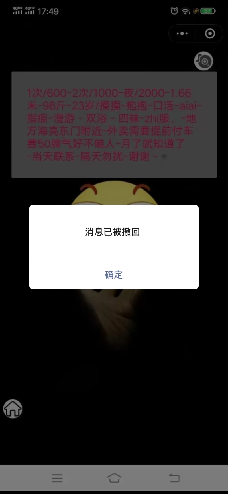 信息分类:楼凤兼职 地区:内蒙古-呼和浩特 信息来源:自己挖掘 年龄:22 颜值身材:90 服务项目:看下面的图 价格:6/20 环境设备:好 详细地址:本段信息已隐藏,请先登陆。点击登陆 , 或者 点击注册 联系方式(微信):本段信息已隐藏,请先登陆。点击登陆 , 或者 点击注册 详细介绍: 黄文不表 自己体会 中国人不骗中国人 楼凤兼职