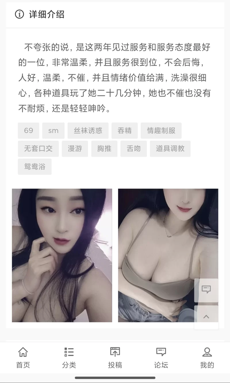 服务项目: sm鸳鸯浴舌吻69无套口交吞精 道具调教胸推漫游情趣制服丝袜诱惑